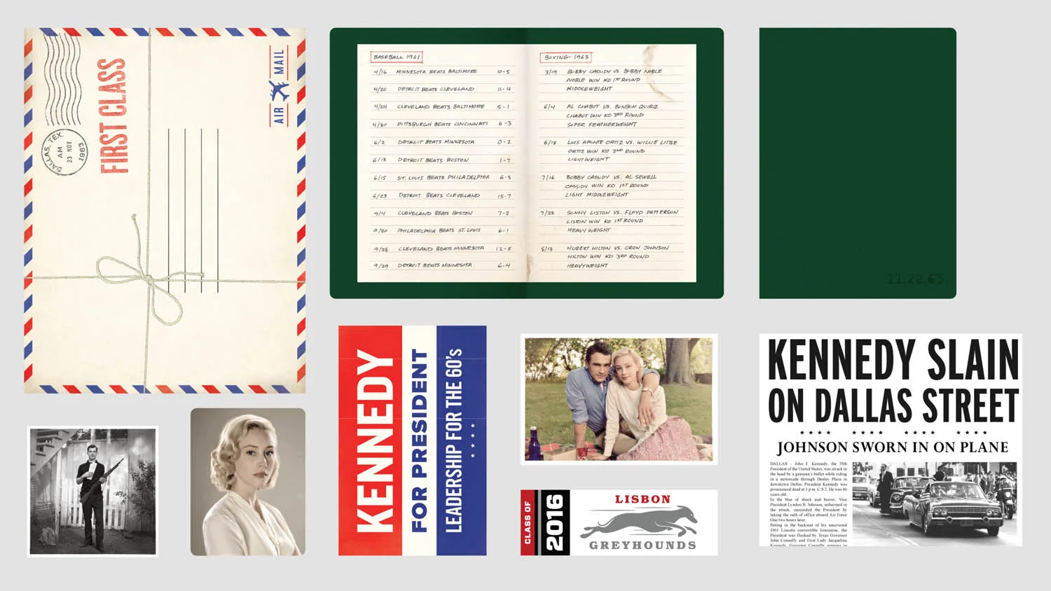 Hulu's most ambitious original to date had a lot of support from every internal team. This project was conceived through mild collaboration with our PR teams. The objective was to create a custom mailer which would be sent to over 600 media outlets and journalists to build interest in the upcoming launch. With a wealth of creative freedom and the central concept of time travel I created Jake's keepsakes from both eras. The icing on the cake was that each mailer was hand address by a calligrapher, ensuring our own form of time travel was complete. Also pictured: Series DVD sleeve.